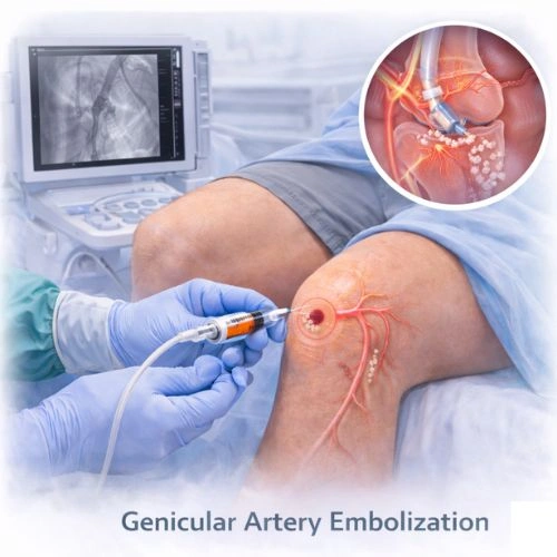 Genicular Artery Embolization is a minimally invasive treatment for chronic knee pain caused by osteoarthritis. At VascuCare, Dr. Rakesh Kumar Kumawat performs this procedure to reduce inflammation and improve knee mobility.