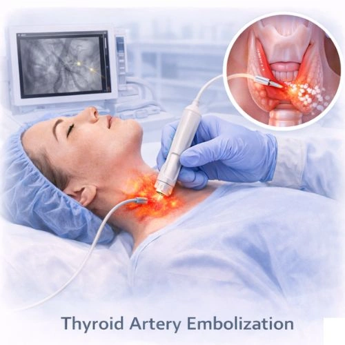 Thyroid Artery Embolization is an advanced treatment used to manage thyroid nodules and thyroid-related conditions by reducing blood supply to the affected area.