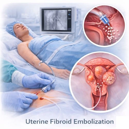 Uterine Fibroid Embolization is a minimally invasive procedure that blocks the blood supply to fibroids, causing them to shrink. At VascuCare, Dr. Rakesh Kumar Kumawat performs this advanced treatment using image-guided techniques.