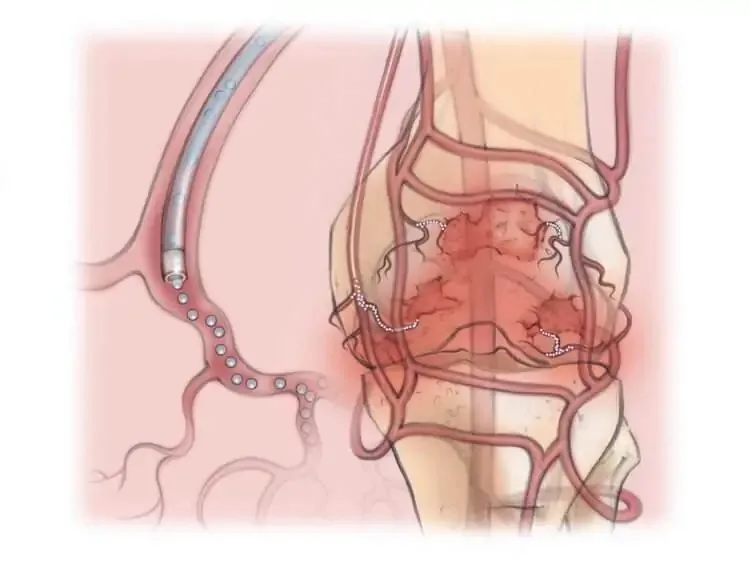 The procedure treats small abnormal blood vessels that sustain inflammation in the knee lining, which may help to reduce inflammation-related pain.