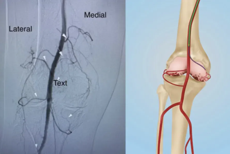 GAE is a minimally invasive, image-guided therapy for the most part indicated in chronic knee pain, mostly related to knee osteoarthritis. In OA, the lining of the joint-or synovium-increases and becomes inflamed. In a few people, these areas of inflammation trigger the body to form small new blood vessels-what the doctor refers to as increased abnormal micro-vascularity. These abnormal vessels can keep inflammation active and may be linked with persistent pain signaling.