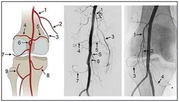 The technique typically involves a small puncture, which is normally done around the groin area, although sometimes it is performed through a wrist puncture, depending on the situation. Real-time imaging is then employed, and a catheter is guided into place, into which the genicular arteries, which are responsible for the knee area, are targeted. The abnormal vessels, which are assumed to be a sign of the accompanying inflamed synovium, are identified. Once identified, small particles are administered into targeted vessels.
